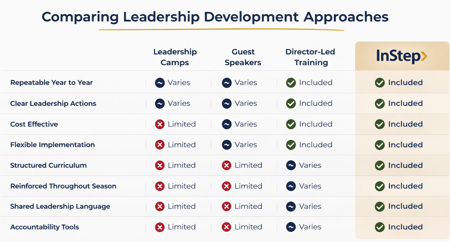Most leadership training gives students a good weekend. InStep gives students a system for the season!